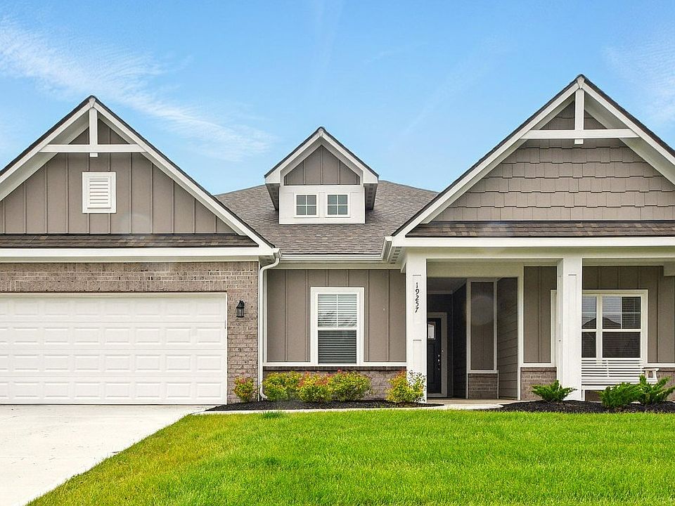 Like new and move-in ready, this beautifully designed ranch was built less than two years ago and offers the perfect blend of comfort, upgrades, and convenience. With 2 bedrooms plus a versatile flex space that can easily be converted into a 3rd bedroom (seller is willing to add a closet or provide a credit), the layout adapts to your lifestyle needs. The open-concept living space seamlessly connects the family room, dining area, and chef's kitchen. The gourmet kitchen is a showstopper with double ovens, quartz countertops, 42" upper cabinets, under-cabinet lighting, subway tile backsplash, pull-out trays, soft-close features, and a sleek canopy range hood. Luxury vinyl plank flooring runs throughout, making cleaning simple and upkeep a breeze. The spacious primary suite offers a large walk-in closet, a dual-sink vanity, and a ceramic tile walk-in shower. Additional highlights include an extended garage bump out for extra storage, abundant closet space, and thoughtful finishes throughout. Out back, an oversized patio is perfect for outdoor gatherings or quiet evenings at home. The HOA covers lawn care and snow removal, allowing for true low-maintenance living. A walking trail around the neighborhood makes it easy to enjoy the outdoors, while the prime Noblesville location offers quick access to US-31, I-465, and I-65, plus nearby shopping, dining, and recreation.