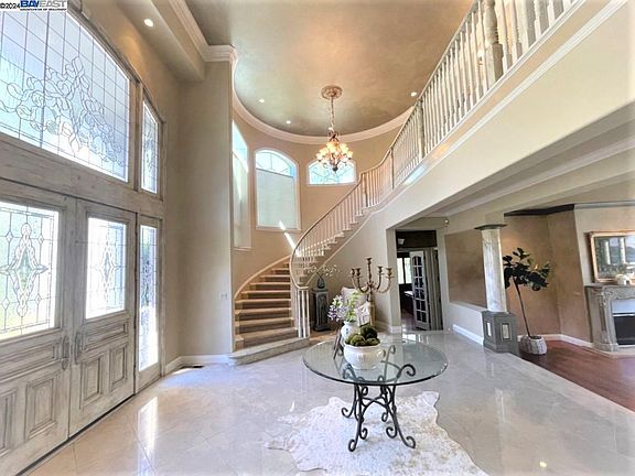 WOW! A custom home located in the prestigious gated community of the Golden Eagle Estate on Pleasanton’s Westside and neighbor of famous Castlewood country club with two 18-hole golf courses. The property offers privacy and comfort-great home with open floor plan and features 5 bedrooms and 5.5 bathrooms with a total of 7,014 sq ft living area. Built on 37,739 sq ft (0.866 AC) lot, it features resort like backyard with spectacular views of the Pleasanton valley including a gorgeous swimming pool with rock waterfall, pool slide, flagstone patio, lush green lawns and wonderful amenities. Close to top rated Pleasanton public schools and easy access to BART, ACE Train, 680 & 580.