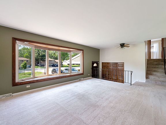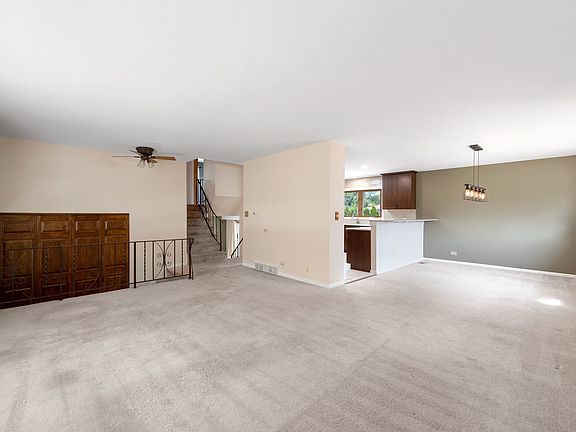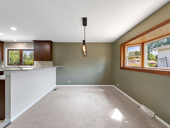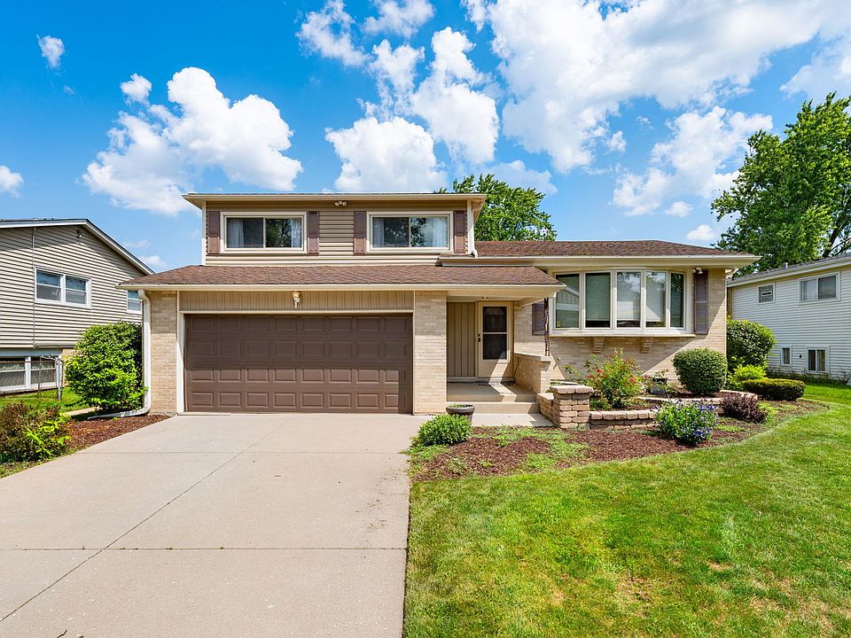 Enjoy 1800 sq. ft. of living space in this picturesque Woodveiw Manor split-level home with a completely remodeled kitchen in 2022, featuring a skylight and 2 updated baths. Upstairs bath has double sinks, soaker tub and bidet. Hardwood Floors under the carpeting. Snuggle up to the woodburning fireplace on the ground level floor, which leads out to spacious deck and patio overlooking the huge fenced in backyard. The fully finished basement could make a nice office or toy room. Large, extended driveway to accommodate multiple vehicles. Great Location for schools, Metra, parks, shopping and dining.