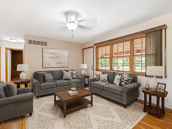 Move-in ready charmer on a quiet, tree-lined street with NO HOA! This well-maintained 2 bed, 1.5 bath home features beautiful hardwood floors, a cozy wood-burning fireplace, and an oversized 1-car garage. The kitchen includes all appliances, and the spacious backyard is fully fenced with a large deck and storage shed—perfect for outdoor living. Enjoy convenient features such as main floor laundry in a separate room, and built-in storage EVERYWHERE. Best of all, double your living space with a huge finished basement with a rec/family room, large bonus room, two extra storage rooms, and a unique dry bar that adds character. Roof is less than 1 year old. Conveniently located near I-135, yet peaceful and tucked away in a well-kept neighborhood. A must-see!