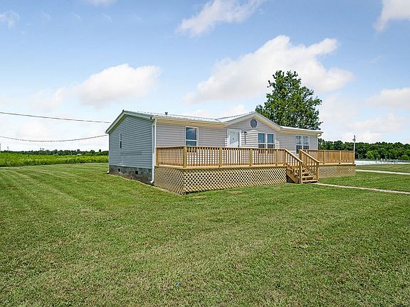Surrounded by farmland, you'll find this recently freshened 1188 sqft home sitting on over 1 acre of wide open yard. Enjoy the outdoors from either one of the massive decks, located in both front and rear of the dwelling. Have peace knowing the hard work of updating the HVAC, gutters, bathrooms, flooring, lighting, and everything in between have been done and it should be maintenance free for years to come. Primary bedroom with full bath is located on the opposite end of the other two bedrooms and full bathroom. Fridge, stove, and dishwasher convey.