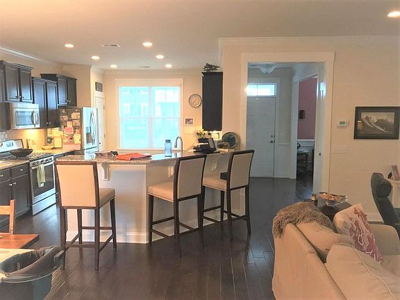 Located on a premium pond lot that backs to woods, this home provides numerous comfort areas/rooms outside and within the home. Sit on the front porch and converse with neighbors, or relax on the large screened porch at rear of home and admire the woods, chirping birds or croaking frogs. Relax up high on the covered porch at the second level of the home and watch sunsets or moon rises over the pond. Entering the home you'll discover a lovely flex space off the foyer that could be used as a Study, Den, Library or Formal Dining Room. The home has upgrade trim and Crown Molding throughout the first floor. The Kitchen contains SS appliances and the French Door refrigerator conveys. A raised bar separates the Kitchen and Great Room. A Breakfast area is alongside the Kitchen. A Powder Room is near rear door as is a convenient Drop Zone. A Grilling Patio is just out the rear door with a convenient Gas line to fire the grill. A Fire Pit is also in the back yard = gather around it for warmth and ambience on those cool evenings. Ascending the stairs to second floor you arrive at a Loft area. The secondary bedrooms bookcase the loft and the Hall Bath is convenient to both. A large Laundry provides generous workspace for that frequent task. The Owners Suite has Tray Ceiling with fan/light. A granite double sink vanity, 5' tiled shower and walk-in closet complete the suite. The Covered Porch is accessed from the Owners bedroom. Consider morning coffee/tea and evening libation on this lovely porch. There's a lot to enjoy in this home. Come see if it can suit your lifestyle.