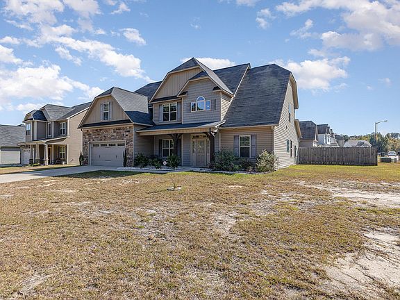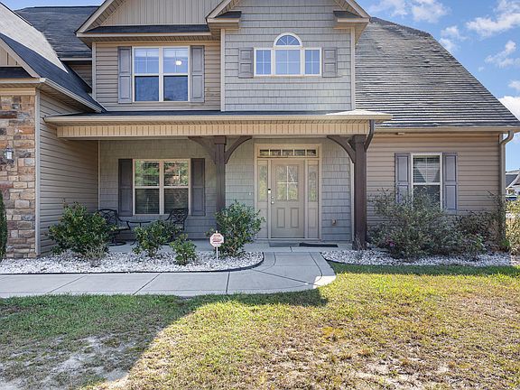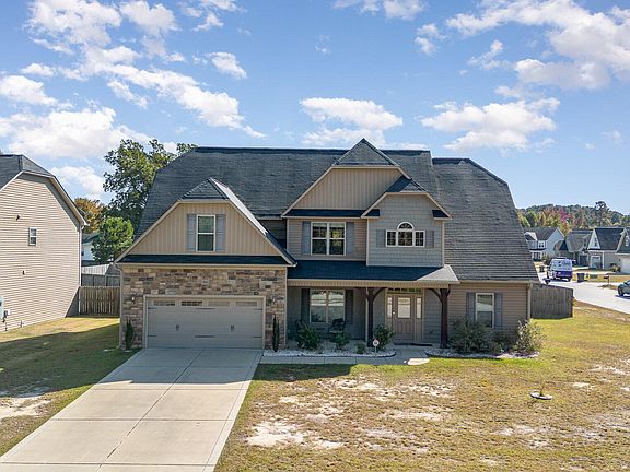 MOTIVATED SELLER! Nestled near Hwy 87 and I-95, this community blends rural charm with urban convenience. You're just minutes away from shopping, a quick 25-minute drive to Fort Liberty, and in close proximity to Raven Rock State Park and Cape Fear River Trail. This neighborhood fosters a sense of community and relaxation. Spend sunny days at the community pool, ideal for socializing or unwinding. Enjoy the exquisite trim work throughout the house, gourmet kitchen, granite counter tops, hardwood floors and recessed lighting that all work together to create a warm and inviting atmosphere. This home features a primary bedroom suite and a guest suite on the main floor, providing excellent hosting amenities and convenient living for both residents and guest. Speaking of hosting, don't forget the enormous media room and three additional bedrooms upstairs. Perfect for entertaining and accommodating family and guest.