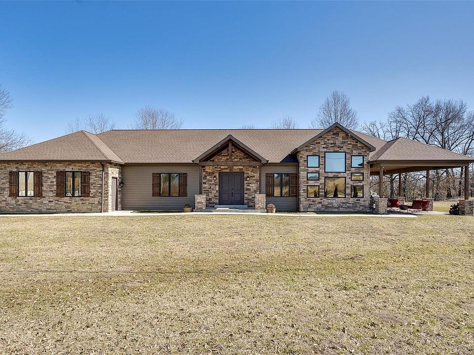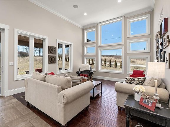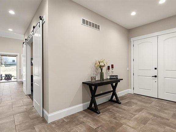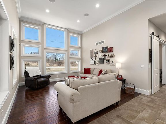 From the moment you step through the front door, you will notice the luxury finishes throughout. Porcelain floors greet you at the entrance foyer. Open the barn doors to your large home office guaranteed to get creative juices flowing. Enjoy the kitchen you have always dreamed of. Custom cabinetry, walk-in pantry, rare and beautiful Cambria granite countertops provide ample prep space for family meals. Soaring 13' ceilings in the living area make entertaining a breeze in this open floorplan.Pets can run outside in the fenced backyard as you enjoy a cup of coffee in front of the stone fireplace or outside on the massive 40x20 stamped concrete patio. Down the hall, is the guest bath, a bedroom, and the spacious master suite with a luxurious tiled master bath. The finished lower level provides even more space with an open family room, a bedroom, 2 bonus rooms, and a full bath. The energy package on this home allows you to maintain a comfortable temp all year with low utility costs.