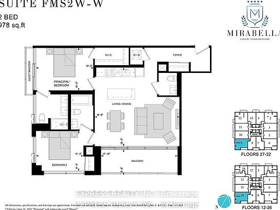 Welcome To This Beautiful Corner Unit At The Luxury Mirabella Condos. Stunning 2 Bed, 3 Bath Suite Featuring 975sqft interior +110sqft balcony with unobstructed clear waterfront and CN Tower views. Lots of upgrades including highend remote control window covering in living room. Few steps away from High Park, Beaches, Humber Bay Bridge, Public Transportation & QEW/Gardiner Express. 1 parking space included. Please refer to the official floorplan for room measurement data.