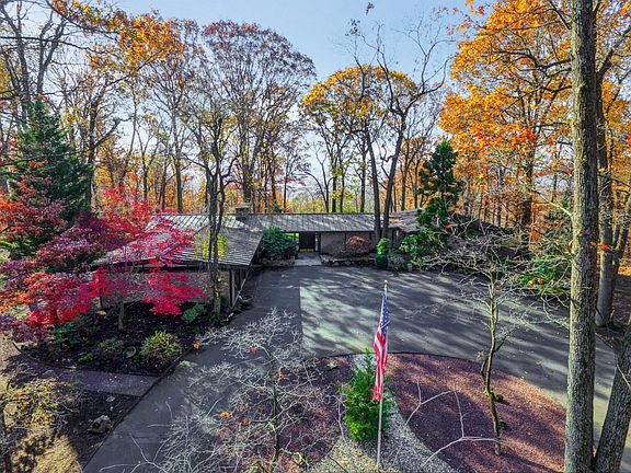 Rare Find Contemporary Ranch Custom Designed for the Distinguished on Premier Mountain Top Road set back on 1.9 Acres of Beautiful Lot to Capture the Outdoors, Landscape, Nature, Gardens, Sunsets & Distant View Southern Exposure. Enter to open floor plan with full wall windows. Spacious Rooms. Stone 2 Way Fireplace. Cathedral Ceilings. Gourmet Kitchen with Professional Series Stainless Appliances, Center Island. Formal Dining Room with Windows all around with built in cabinets. Master Suite with luxurious bath & closet systems. All bedrooms with private baths. Lower Level / Ground Level has a Great Room is 26 x 40, kitchen, exercise room, private entrance. Storage & Utility Room. 3 car attached garage. Private & Serene.