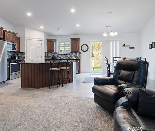 LIKE BRAND NEW WITHOUT THE HEADACHE & HASSLE OF BUILDING! This beautiful 2021 Beck Built home offers 3 bed, 2 bath, 3 car garage and 1,512 sq ft. Owner pride is apparent in this immaculate, pristine, and completely move-in ready home. Open concept layout! With living room, dining room, and kitchen tied seamlessly together as one creating the ideal space for gathering or entertaining. Kitchen is a dream with rich, dark cabinetry (all of which are soft close throughout the home, including drawers), accented by dark granite, and beautiful backsplash. Over sized horseshoe center granite island/breakfast bar add to the already tons of counter space! Matching stainless steel appliances! Oversized pantry! All bedrooms are spacious with large custom built closets with magnetic close doors. Spare bath offers shower/tub combo and single sink vanity. Spacious master does not disappoint! Offers walk-in closet, and a master bath with elevated large double sink granite vanity with plenty of counter space and oversized tile shower. Beautiful yard in front and back. Back offers concrete patio and is partially fenced. A/C. 3 car garage has man door.