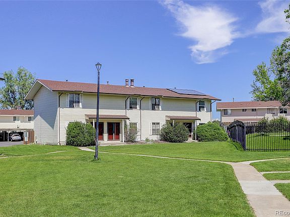 Light and Bright 3 bed two bath town house. New paint & flooring. Newer furnace & hot water heater. Updated full bath room. New window treatments. New trex deck in patio 2017. All appliances are included. Basement is finished with a flex room and non conforming bedroom- has rough in for a third bathroom. New windows. Cherry Creek Schools. Conveniently located near Utah Park and Rec Center. Transit system near by. Lower utility bills due to paid off solar panels. Short walk to schools. Water & Sewer in HOA fee.