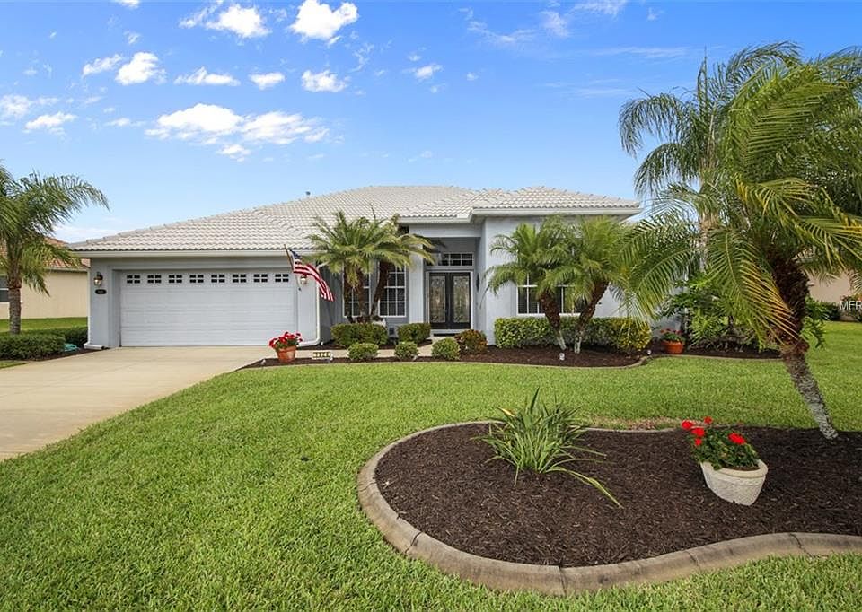 Wonderful 3B/2B + den pool home located in the much sought-after Bobcat Trail. This 2166 sf home features a formal living room plus family room with a beautiful lanai and pool area. The large kitchen was remodeled with granite counter tops, wood cabinets and new stainless-steel appliances in 2016, and just off the kitchen is a butler's pantry. As you enter the home you will notice the large dining and formal living room with a great view of the pool and pond. The ample sized Master suite includes sliders that open to the lanai/pool area, a very large walk-in closet, crown molding, dual sinks, garden tub, and separate shower. Other great features in this home include, 18" tile throughout the living area, neutral colors, home is wired for surround sound, storm shutters, well for lawn watering, economical gas appliances, water heater and heat. Bobcat is the home of the new Charlotte Harbor National Golf Course of which membership is optional. You do not have to be a member of the Club to enjoy the other amenities that Bobcat has to offer, such as a heated community pool, a fitness center, and a community center for the activities they offer. Bobcat is conveniently located to restaurants, shopping, medical care, I-75, US-41 and only 30 minutes to Englewood Beach. The tax amount includes the $1689 CDD.