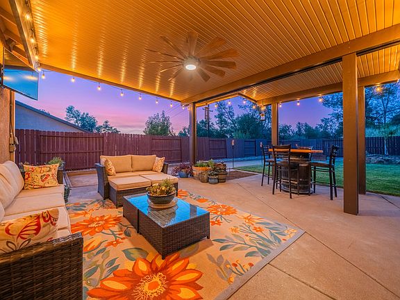 One of a kind entertainers dream property, centrally located in NE Redding. Newer Engineered Luxury Vinyl Plank Flooring. Custom designed Alumawood patio cover with a 12 blade outdoor fan. Fully remodeled master bath with Cambria Quartz countertop, Custom commercial grade frameless glass shower enclosure with upgraded hardware and handles, floor to ceiling tile in stall shower, Cambria Quartz seat, custom recessed tiled organizer, 'chunky' stainless hardware, LED stainless lighting, Barn door entrance with sheetrock work removing doors, and custom built shoe organizer. New AC unit in 2022. Floating shelving in all 3 bathrooms. All 3 toilets have been replaced with quick fill bowls and soft close lids. New Kitchen Aid dishwasher and brand new never been used Whirlpool microwave. New Moen garbage disposal. Freshly painted inside, garage door, front door, outside trim, and gutters. Freshly stained fence, 5 yards of walk on bark, brand new 'tinted' window screens, 15 yards of concrete patio, regulation Bocce court and horse shoe pits, massive rock boulders, palm trees, extra 3/4 inch water spicket for high flow. Many other extras, and love/care on this ONE owner house.