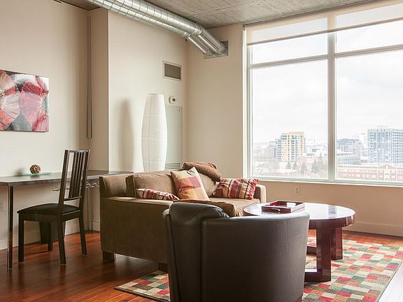 Fully furnished loft condo with wonderful downtown city views. Located at The Civic by Providence Park. One bedroom, 715sqft, on the seventh floor facing east with panoramic views of downtown and mountains. Luxurious linens, queen bed, WiFi, gas cooking, air conditioned, washer/dryer in unit, and a great EZ entry parking space in the secured garage. No pets or smokers please. Live in an energy efficient green building with staffed concierge. Steps to MAX, Providence park, NW Portland, downtown, and the Pearl District. Corporate housing OK. Must abide by HOA rules and get tenant insurance. Furnished, owner pays all expenses. Tenant to acquire tenant insurance as a condition of move in as per HOA rules. Three month minimum stay.
