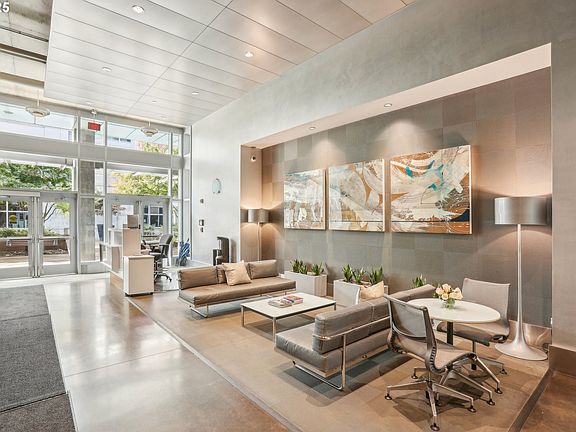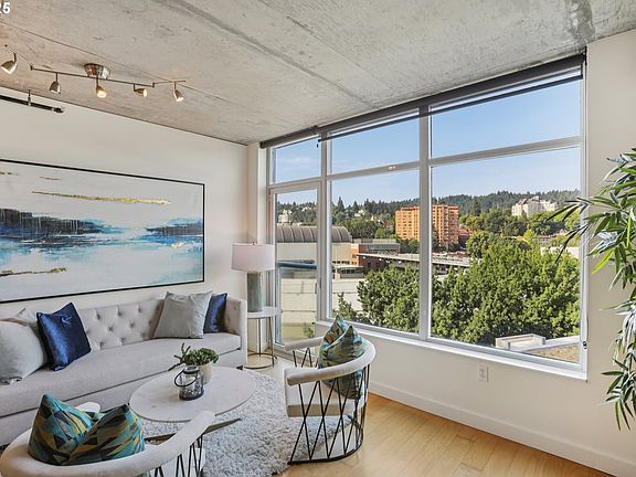 Experience modern urban living with timeless elegance in this beautifully appointed one-bedroom condo at The Civic. Perched on the 9th floor with stunning views of Portland's West Hills, this home features an open layout with soaring 9-foot ceilings, a Juliet balcony for fresh air, and expansive floor-to-ceiling windows that bathe the space in natural light. Rich hardwood floors, fresh interior paint, and a new dishwasher add warmth and convenience, while the tiled shower is designed to resist mold for peace of mind. Step outside and enjoy the concerts from your condo or take in the vibrant city scene. All within a sustainably built, LEED Gold-certified community. Enjoy ultimate convenience with in-unit laundry, 24/7 concierge service, and a secure building with no rental cap—ideal for both homeowners and investors. Located in the heart of the city, you're just steps from public transportation, top-rated dining, vibrant shopping, and all that downtown Portland has to offer. Welcome to refined city living at The Civic—where comfort, style, and convenience come together.