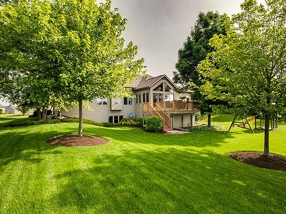 This home has it all!!! This 4 Bedroom, 3.5 Bath Ranch home on a full finished daylight basement features: 3 car heated garage with extended 3rd bay and 9 ft ceilings, work lights, utility sink, storage under deck, irrigation system & professionally landscaped. This home also features ceramic tile, split floor plan, formal dining room, open floor plan, 4 season room & pond view. Master suite features; high ceilings, Jacuzzi tub, double walk-in closet, double vanity & ceramic tile. Great basement for entertaining with wet bar, room for media and full bath & bedroom, lots of storage and plenty of room. Laundry on main level, wired for security, gutter guards, floored attic beside storage in basement, Aprilaire, additional storage in attic, high ceilings throughout, gas fireplace & no maintenance deck.