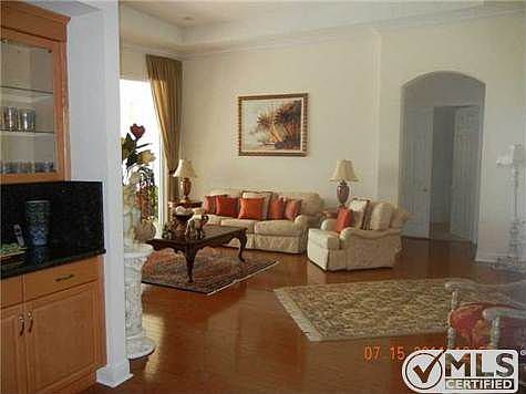 1/11/2014 This lushly landscaped five bedroom four bath home with three car garage is located on a double cul-de-sac street and sits on an amazing lakefront home site with long lake views. The beautifully appointed one story home has a three way split bedroom plan. Features include wood floors in all main living areas, crown moldings, Butler’s pantry, custom window treatments and a built-in sound system with speakers. The gourmet kitchen has wood cabinetry with crown moldings, granite countertops with full height backsplash and Franke by Villeroy Boch undermount sink, a cooking island and a convenient breakfast bar. The separate cafe area has seamless glass windows. The family room, open to the kitchen, has California shutters and speakers for surround sound. The fifth bedroom/den has French doors, wood blinds and a wood built-in unit for computer and file storage. There are three additional secondary bedrooms, one a full guest suite. The large 16’ x 30’ master suite has tray ceiling, large sitting area and outfitted closets. The master bath has marble floors and Kraftmaid cabinetry with mirrors to the ceiling, dual sinks and vanity area, Roman tub, shower with frameless glass enclosure, and private commode. The backyard is paradise with a large covered screened patio, freeform pool, beautiful landscaping including ten Palm trees and garden lighting. The home has a transfer circuit for a generator wired to the back of the house and accordion hurricane shutters. You'll love the community clubhouse with pool, tennis, exercise facility and more! Saturnia is located across the street from "A" rated Sunrise Park Elementary and "A" rated Eagles Landing Middle Schools and around the corner from South County Regional Park.