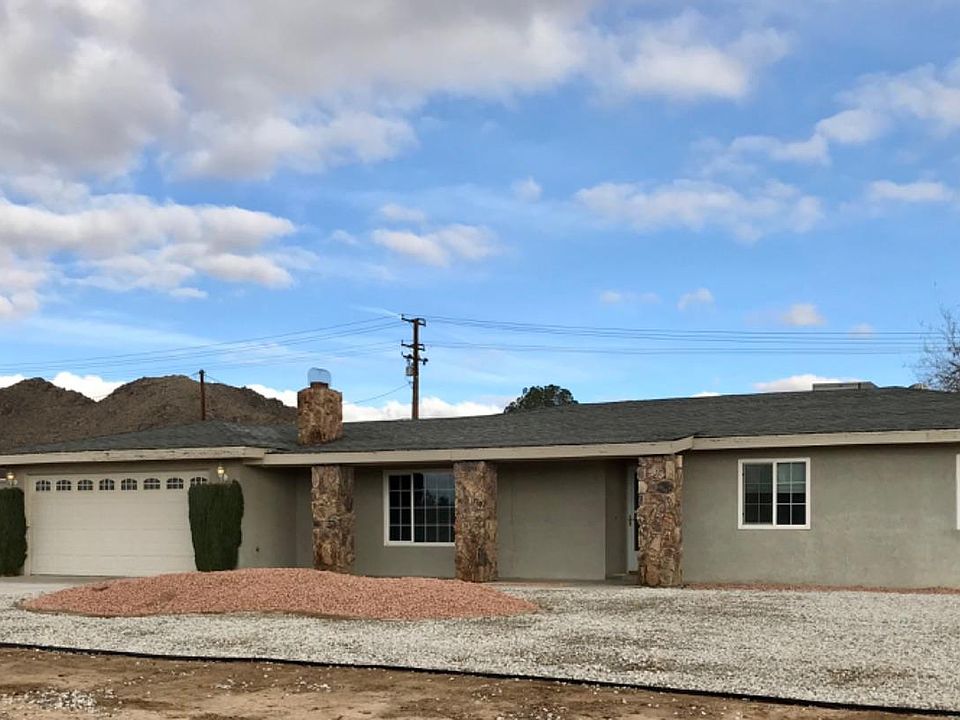Apple Valley Desert Knolls 3 Bedroom 2 bath Newer Granite Counter Tops, Cabinets, new Carpet, AC/Heater,newer Doors Windows, Trash Compactor, Stove, Dishwasher, Sink. All of this plus a covered patio, insulated-finished garage, garage entry, sunken living room with large stone fireplace, large lot,beautiful view of mountains