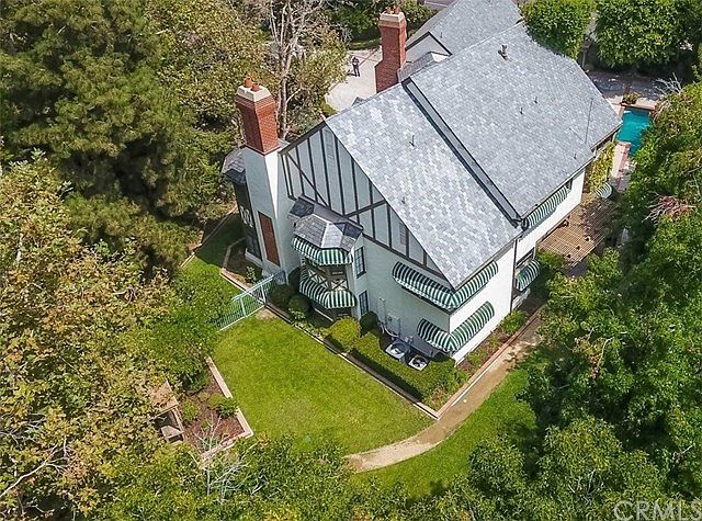 It is with great pleasure to present the Clarendon House within the private Somerset community, in the highly sought after city of Villa Park. First time on the market since the original purchase from builder G.L. Lewis. This architecturally distinctive home can best be described as French Tudor, or a Country Chateau and is surrounded by lush vegetation, mature trees and is located behind a gated entrance. Whether it's the abundant streams of natural light by day or the coziness from one of the unique 4 over-sized fireplaces at night, this is one of those homes that just feels right! Much craftsmanship and care is found throughout this adored manor with its high coffered ceilings, with open beams featured in some rooms, hand rubbed woods, crown moldings, solid mahogany front door, french doors, diamond pane windows, 2 indoor stairwells, 1 outdoor spiral staircase, a stunning home library with custom floor to ceiling ladder, 2 wet bars and entertainment areas; one downstairs in open beamed family room & one upstairs in huge open beamed bonus room with deck above pool-side kitchenette and outdoor full bathroom. Enjoy the lush grounds with pool, spa, meandering path and water feature. RV access and pad possible at side yard. At one of the lowest price per sq ft in the city, this home is just waiting for your personal touches. Close to 55, 5, 22, 91, 57 fwys and toll roads. Minutes to schools and shopping.