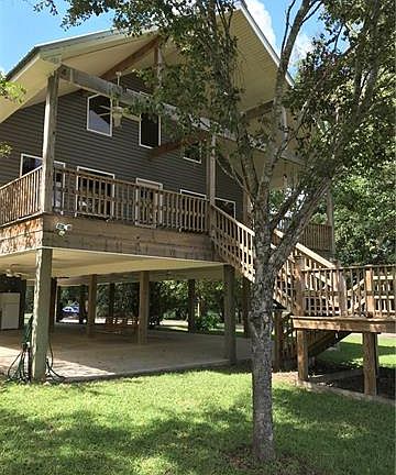 Masterfully crafted, raised camp with magnificent view of Pearl River. Tongue and groove pine vaulted ceilings with wall to wall windows for gazing at the river. Sprawling loft with 2nd master suite that looks down upon spacious living and open kitchen. Rear wooden deck overlooking water where you can park your boat or store it in boat shed next to your live well. Ample room for parking your RV, truck and other toys. Covered outdoor area with wet bar and additional storage with bathroom and shower.