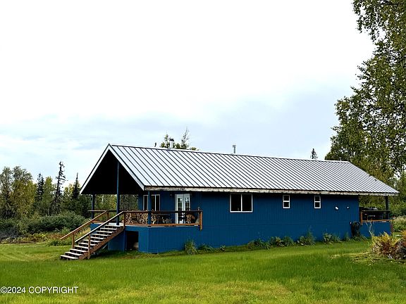 All the amenities, yet far away from the city! 5 acre semi-remote property near Petersville, AK. Accessible by ~7 mile snowmachine ride in winter or drive your 4x4 vehicle all the way there in summer months. Set up for year round living with alternative energy system and multiple heating sources. All the comforts of home including laundry and a dishwasher! 1344 sq ft home with 2 large12x28ft covered deck areas provide additional storage options and mountain views. Watch the alpen glow rise and fade on the AK range while cozied up in your living room or with your morning coffee. Open concept main living area with tongue and groove vaulted ceilings has multiple heat sources including wood/oil drip/toyo stove depending on season and preference. Beautiful kitchen has hickory cabinets, ample countertop work areas, and all appliances. Down the hall are 2 bedrooms with closets, full bath, laundry/utility room, as well as access to the back deck and attic storage. Other buildings include a wired 20x32 pole barn garage to house all your modes of transportation and equipment. Additionally, there is a 16x32 wired/heated shop for all your projects and materials as well as housing the alternative energy system. 12KW diesel generator equipped w/ autostart & 350 gal fuel tank housed in separate 8x8 building. 60 ft well and 1000gal septic system also on property. All the hardwork has been done!
