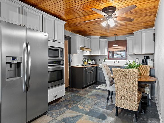 Remodeled ranch home on a large lot. New architectural shingle roof (2019). New septic system (2019). New HVAC (2021). New 625 square foot addition (2019). Refinished hardwood floors (2023). New stone fireplace (2019). Updated bathroom (2023). Updated gourmet kitchen (2023) with new stainless steel appliances (2021), farmhouse cast iron sink, and butcher block countertops. Updated main-level laundry room (2023). New light fixtures (2023). New exterior and interior doors (2020). New metal siding (2020). Tongue and groove ceilings/walls. Large attic easily converted to livable space. Large detached garage with new double doors. Second driveway ideal for RV parking.