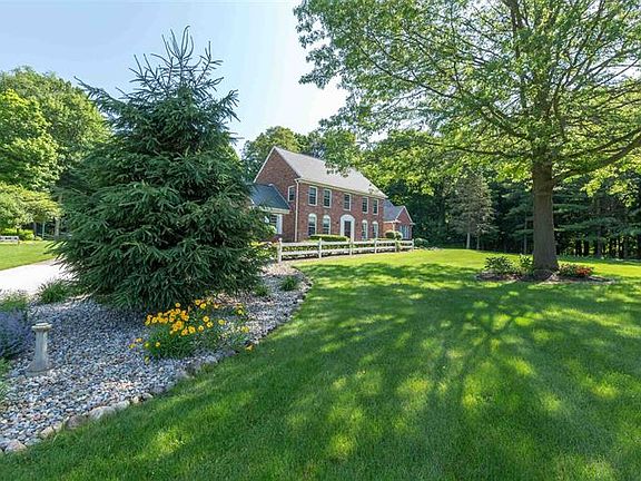 A classic, extensively remodeled 2-story brick colonial that comes with its own captivating and pristine landscaped, 10 acre park that one can soak in from almost every window. Conveniently located on the quiet South side, this property has the ambiance of country yet is just minutes to downtown, 7 miles to Notre Dame, 5 miles to medical center, within easy access to airport and less than 3 miles to grocery and shopping centers and walking distance to the library. This uniquely designed, well insulated quality home offers many advantages. Its various features include: An oversized 1st floor master bedroom suite complete with sitting area, gas fireplace, large master bath and 12X12 custom walk-in closet. The renovated kitchen is a delightful cooking eating and gathering area featuring tile backsplash, sub-zero refrigerator and lots of custom, high quality solid hardwood cabinets with crown molding. A roomy study with cathedral ceiling and large bay window. A spacious sun room with cathedral ceiling, 6 skylights and ample floor to ceiling windows sits to the side of the family room. With its own efficient wood burning stove and an abundant supply of firewood from your private woods this room can also be enjoyed as a winter sanctuary. Three spacious bedrooms on upper level with a 2nd master suite that has been updated with beautiful hickory floors, and renovated tile shower. Large finished exercise room in basement and, with its own full tile bathroom and egress, can also be converted as a 5th bedroom. Mudroom and 1 2 bath separating the attached garage from house, has floor constructed with paver bricks from South Bend city streets from the early 1900's, an especially nice feature in the winter. Original furnace replaced in 2010 with high end Lennox system. All windows and entryways updated in 2003. Kinetico water conditioner for drinking with reverse osmosis. Natural gas hook-up for grill and 400 amp electrical capacity. The property also includes a 3-door pole barn with new metal roof and solid brick workshop that can be used as an additional 2 car garage as well. 2nd new 4" well is located close to the barn.