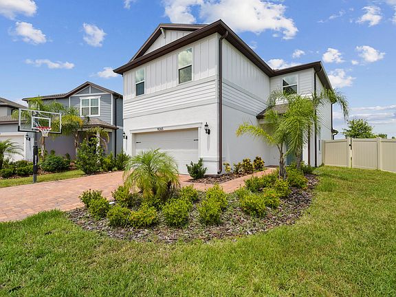 Welcome to this beautifully maintained 5-bedroom, 3-bathroom home located in the highly desirable gated community of K-Bar Ranch in New Tampa. Built in 2022 and situated on a quiet cul-de-sac, this spacious 2,630 sq ft two-story home offers a modern open-concept layout filled with natural light perfect for both everyday living and entertaining. The gourmet kitchen features granite countertops, stainless steel appliances, and a center island ideal for casual dining. The luxurious primary suite includes a walk-in closet and a spa-like bathroom with dual vanities, a soaking tub, and a separate shower. One of the five bedrooms, along with a full bathroom, is conveniently located downstairs ideal for guests, in-laws, or a private home office. Four additional bedrooms upstairs provide flexibility for family and lifestyle needs. Enjoy peaceful pond views from your private, fenced-in backyard with no rear neighbors, creating a serene and secluded outdoor retreat. The home also features a whole-house water softener system and energy-saving solar panels, significantly reducing monthly electric bills an excellent value for eco-conscious tenants. Located within an A-rated school district and just minutes from shopping, dining, hospitals, and major highways, this home offers the perfect blend of comfort and convenience. Residents also enjoy access to resort-style community amenities, including a pool, playgrounds, and walking trails. Pets are welcome with approval.