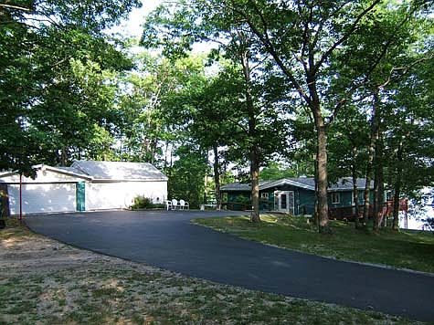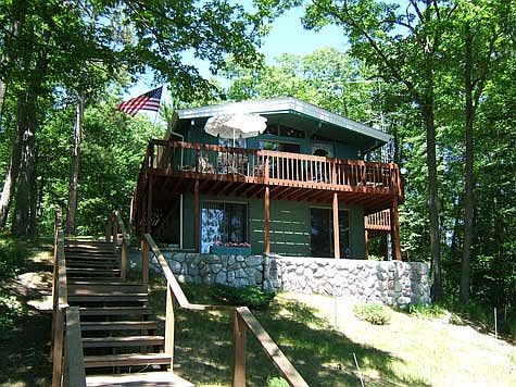 Captivating views of Ess lake, in a private, secluded setting on just over 3 beautiful wooded acres at the end of a cul-de-sac. This is a great year-round residents or up north get away that has 4 bedrooms (2 up/ 2 down), and 2 baths (1 up/ 1 down) just under 2400 ft. and 160' of water frontage. Home has an open floor plan with some rustic cedar finishes, central air, sauna, gas log fireplace and appliances included. Large windows and a door wall leading to a treated, wraparound deck on the main level. Trail leads to the water, you candrive a golf cart, for convenience. Furnished & Immediate Occupancy!
