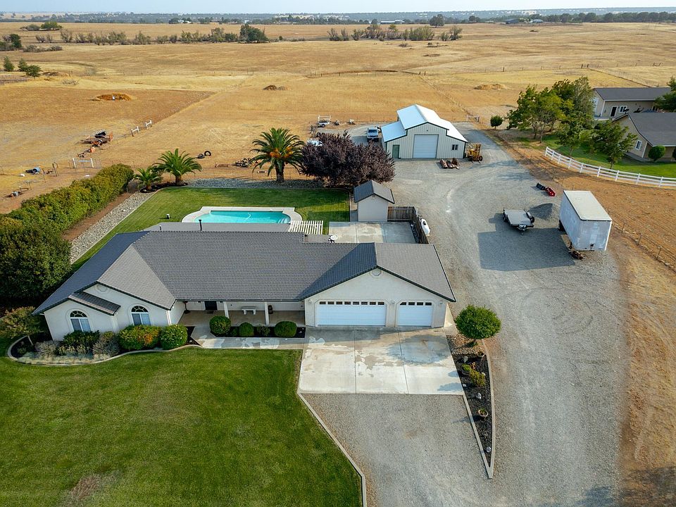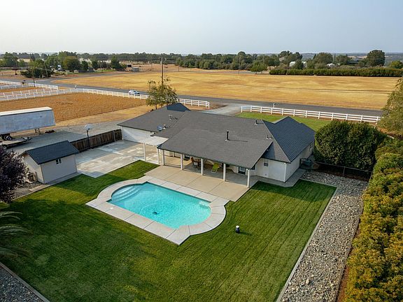 3.3 level acres with a custom home, in ground Gunite pool, 40 x 51 shop with 2 large roll up doors and 1 regular car garage door. This 3 bedroom, 2 bath home offers a separate office and indoor generous laundry room, updated kitchen with oodles of cabinets, smooth surface counter tops and stainless appliances. Attached 3 car finished garage and plenty of room for RV (hookups already in) and extra vehicle parking. Whole house fan and plumbed for central vac, natural edge wood breakfast bar, double closet at entry and 2 linen hall closets, walk in closet in master suite with access to the covered expansive back patio. Basketball hoop area and batting cage backstop. This property is ready for you to have some fun!! Located on the west side of Red Bluff approx. 6 miles from downtown, Tuscan Ridge Winery is just down the street. Great sunsets and sunrises from this property, it's a great place to relax and call your new home. Car lift in shop is not included. Shown by appointment only.