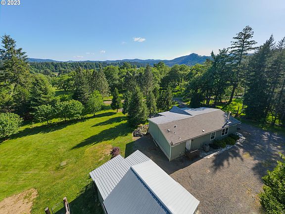 Parklike setting on 2 acres, less than a mile to the famous Umpqua River! You'd think the 2014 home, was brand new! Features high ceilings, living AND family rooms, spacious kitchen, laundry room, and more! Primary suite has walk in shower. Outside is truly a park-like setting with fenced pasture, chicken coop, shop, covered deck with patio, and even a tree fort! Owner pride shows in every corner of the home and property! Just 6 miles to Elkton and 18 miles to Sutherlin.