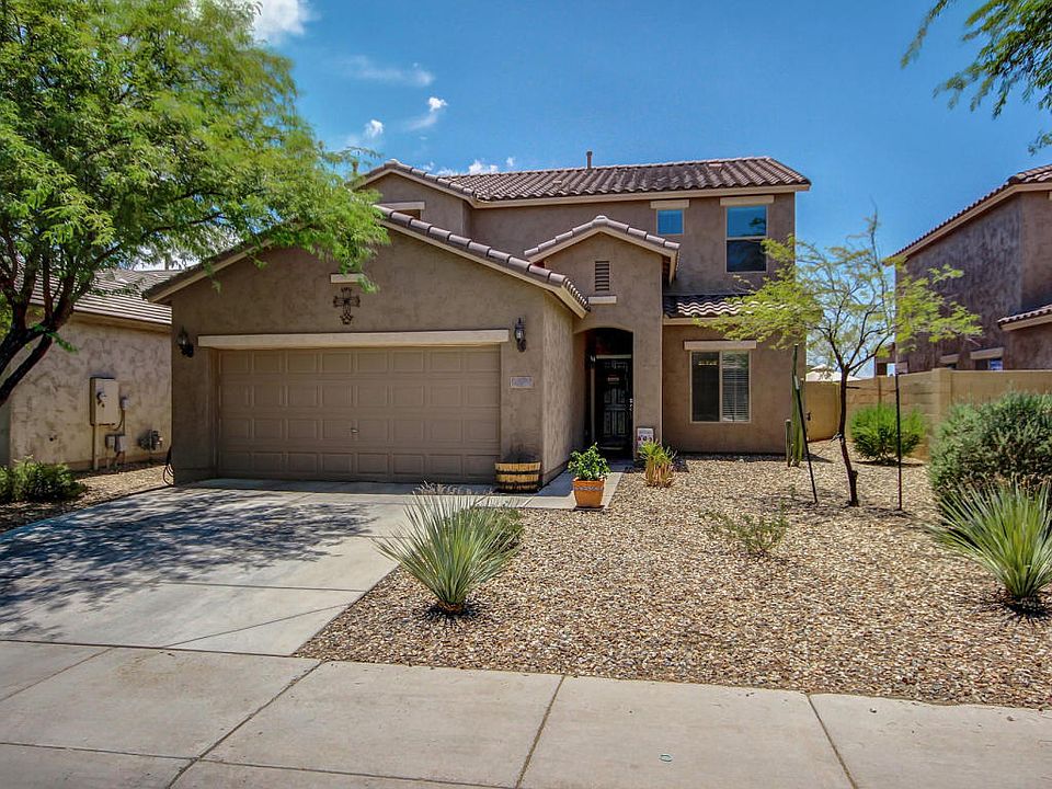 Stunning two story home in Buckeye! Mood lifting color palette and neutral flooring throughout. Kitchen is complete with center island, breakfast bar, granite countertops, and stainless steel appliances. Loft and spacious bedrooms upstairs! Large master suite has plush carpet with ceiling fan and picture window. Full bathroom with double sink vanity. Huge backyard features a covered patio with a blank canvas awaiting your dreams and designs. Come see this home today, before it's too late!