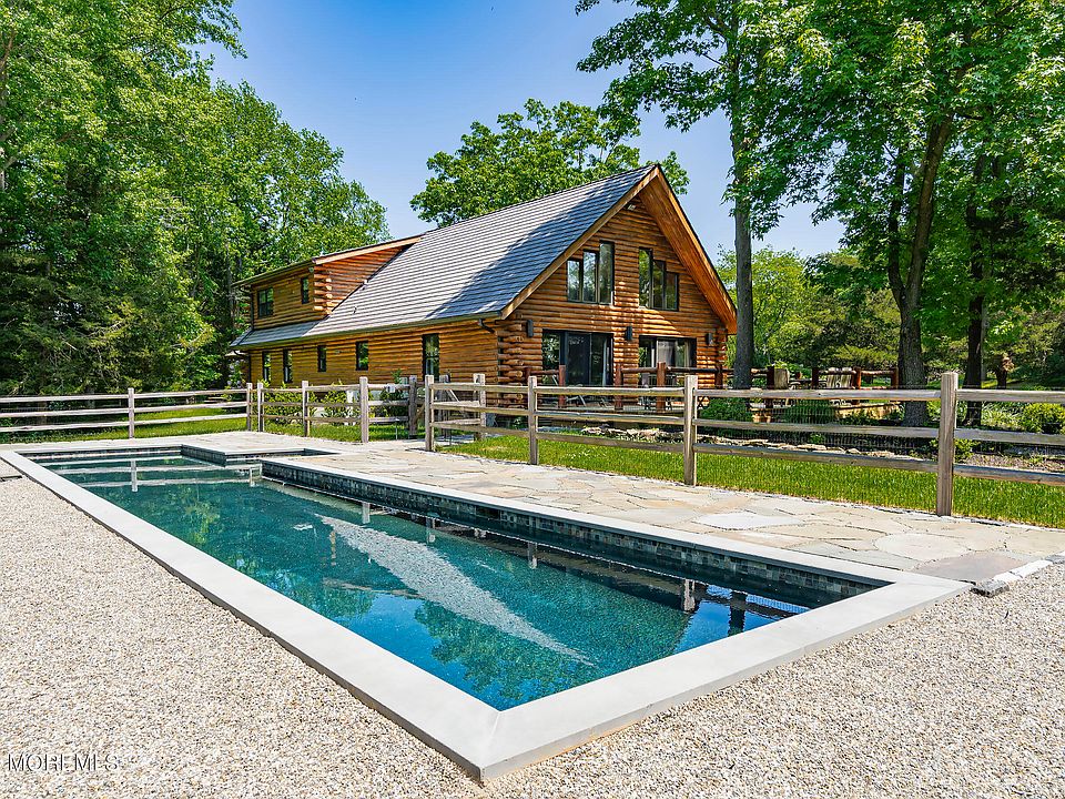 PRICE REDUCED OWNER FOUND NEW HOME! MOTIVATED NOW! BRING REASONABLE OFFERS! A Secluded LogHome Oasis 3.5-acre private retreat, this custom-built 5 bedroom, 3 bath log home invites you to experience the perfect blend of rustic charm and modern luxury. As you meander down the tree-lined stone driveway, you'll be captivated by the home's stunning exterior, promising a sanctuary of peace and tranquility. Masterfully Crafted Interior Step inside this 3300 sqft home, and you'll be greeted by a sunlit reception living room that boasts breathtaking 28-foot vaulted ceilings adorned with rustic timber beams. The broad plank custom cherry wood floors add warmth and elegance to every step. With two primary master suites on both the first and second floors, this home offers ample space for comfortable living.