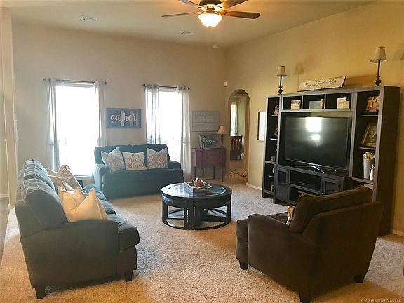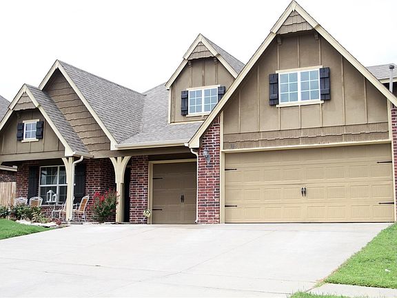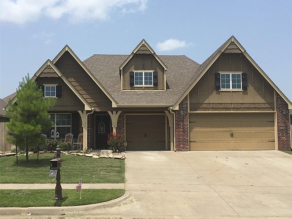 Former Builder's Model! Large open plan w/ kitchen island. Granite Countertops. 3 downstairs, bedrooms, office/4th bed option, Huge upstairs game room. 3 car garage. Bixby Schools, HOA has 2 pools, splash pads, walking trails, and ponds! Priced to Sell! Upstairs is plumbed for a bathroom!