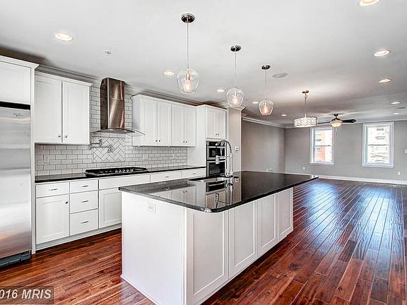 REDUCED!! Rare 21'' wide 2 car garage home w over 2700 sq ft of premium finished living space! Property features multiple balconies, hand scraped hardwoods, over-sized island, SS appliance package, custom cabinetry w/ glass inlays, pot filler, home audio system, massive roof-deck, wet bar, body sprays, backsplash, great closet space, premium fixtures & tiling, custom trim package & more! $5k bonus!