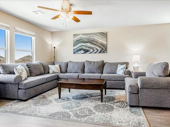 Rare, Fully Furnished Corner Lot Home Prime Location! This move-in-ready home offers modern comfort and unbeatable convenience. Located on a corner lot, it provides easy access to Seguin, San Antonio, and Austin. Within four miles, you'll find H-E-B, Walmart, and a variety of dining options. Enjoy a private, enclosed yard and a charming front porch perfect for morning coffee. Inside, the open-concept design features stylish, new furnishings, central air-conditioning, and high-speed WiFi. The well-equipped kitchen includes stainless steel appliances and white cabinetry. The spacious living area includes a sectional for relaxation, while a dedicated workspace makes remote work easy. Sleeping Arrangements: Primary Bedroom: King bed, en suite bath; Guest Bedroom 1: Queen bed; Guest Bedroom 2: Queen bed Guest Bedroom 3: Flexible space for additional needs All utilities are included! Ideal for temporary housing, this home offers a hassle-free stay. Nearby Attractions: Fischer Park, Gruene Hall, Schlitterbahn Waterpark, McKenna Children's Museum, Panther Canyon Nature Trail, and more!