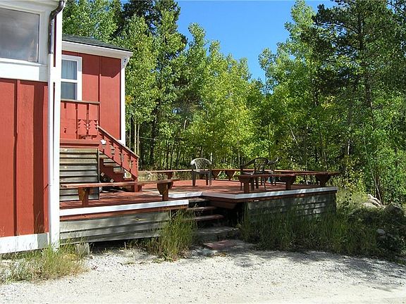 Mountain rustic charm tucked into a wooded home-site. Wood tongue in groove throughout gives that warm embrace you imagine in a mountain home. Cozy gas stove, for those Rocky Mountain nights. Big deck for hanging out on those sun drenched days. Plenty of room to spread out in this well kept cabin. Located just outside of Leadville and only 20 minutes to Copper Mountain or Ski Cooper. Fifteen minutes to Turquoise Lake. Rentals $20k. Conventional financing not available. Private loans available.