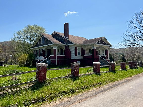 Sears Robuck Craftsman-style home, 1.5 story with full basement and 4.22 ac level yard + 8.661 ac for a total of 12.881 ac with garden spot, space for some grazing animals, and a nice mostly year round stream! Outbuildings for tools and storage. 2 Nice covered porches and a HUGE rear deck to enjoy. 8 acres of woodland to hunt or for privacy. House is very livable but needs TLC. Being sold ''as is'