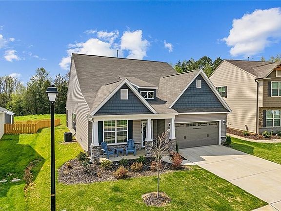 Stunning one level home in highly desirable Brunswick Crossing! Gorgeous LVP flooring, fireplace, screened patio! Split bedroom floor plan with guest rooms and bath on one end and large primary bedroom privately tucked away. Large and luxurious primary bath with separate shower, soaking tub, extra large walk in closet! Beautifully decorated with neutral colors, exceptionally clean, near end of street privacy, move in ready! Eat in kitchen with breakfast bar and dining alcove. 2 car garage, covered porch, convenient to schools and shopping!