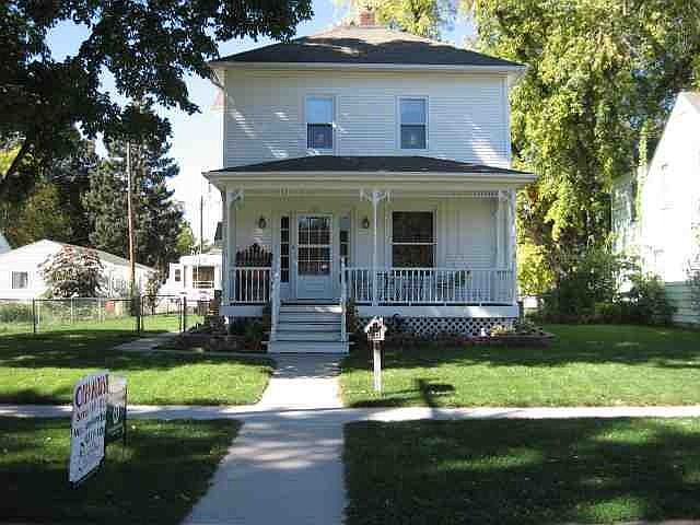 Charming two story home with inviting front porch. Dining room offers hardwood flooring, bay window and adjoining office. Beautiful entry with woodenstaircase add to the beauty of this home. Alley access with extra parking pad, sewer drain for camper and fenced yard. Newer main water and sewer lines. The inside of this home is as charming as the outside. This property has been well cared for and will make a wonderful home!