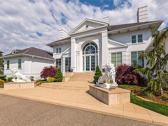 Spectacular opportunity to own 7,150 SF with view of downtown Louisville. Lot 14 and part Lot 15 transferred with deed has a huge rear yard for entertaining. Open your door to marble floors and a grand staircase. Left of the foyer is the home office with leather floors and mahogany wood. The Great Room has tall barrel ceilings and a $50,000 TV Video wall. Enjoy incredible relaxation, gorgeous sky views, nice breeze from portico and patio which flow inside large doors to your Great Rm. The dining room and sunken bar opens to the Great Rm. Fabulous meals can be prepared easily on your newer gas range, and large center island. The kitchen windows flow along the rear wall for city and skyline views. All appliances stay including washer and dryer which was purchased in April 2020. Lake views towards the west side to enjoy swans and more nature. Restricted development (see restrictions). HOA for Lot 14 is $125, plus Part Lot 15 is $83.75 equaling $208.75 per, month. Domestic animals - inside pets only. Most furniture is negotiable outside RE contract. Lot 14 Left (North Side) has an appx 15 feet utility/sewer easement from 30 feet total easement on the subdivision recorded survey. (Easement area under large pine trees).