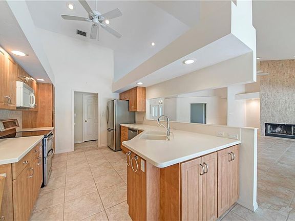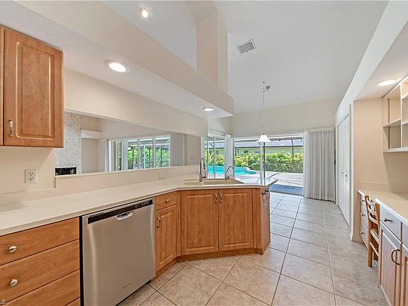 H.14674 - Fabulous split bedroom floor plan on quiet side street. Large great room with soaring ceilings, walls of glass and open to the kitchen. Plenty of space for large families to gather. Neutral tile flooring throughout all the main living areas and den. A powder bath is perfectly situated off the great room. Light kitchen cabinetry and stainless steel appliances. Lots of solid surface counters make meal prep easy and delightful. Easy access to the lanai makes outdoor entertaining a breeze. There is a huge covered lanai area for all weather use. The sparkling pool is nice sized and there is extra sunning deck space. The master suite has a huge walk-in closet, large walk-in shower and dual sinks. Three more generous size bedrooms share a guest bath in their own wing. A den/4th bedroom has a walk-in closet. Beautiful landscaping and freshly painted outside give wonderful curb appeal. A new row of calusia hedges has been installed to frame in the side yard for privacy. Imperial has a fabulous location with easy access to shopping casual and fine dining, parks, A rated schools and I-75 for traveling. Low HOA fees include cable and high speed internet.