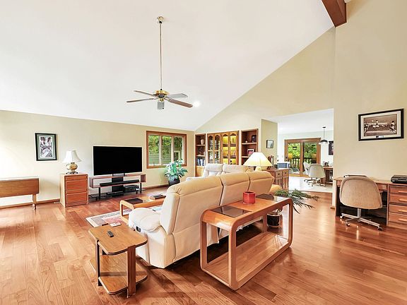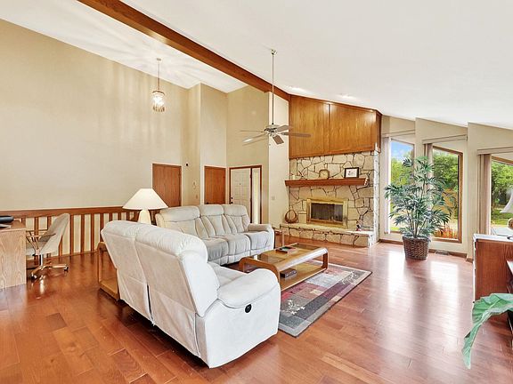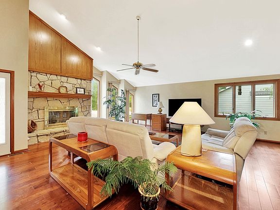 This exquisite and meticulously maintained home is truly a one-of-a-kind gem. Boasting 5 bedrooms, 3 bathrooms, and a 2-car garage, this stunning residence is sure to impress. Upon entering, you are greeted by a grand vaulted ceiling in the open living room, complete with beautiful windows that fill the space with natural light and a charming stone fireplace. The living room seamlessly transitions into the updated kitchen/dining area, featuring an oversized pantry, sleek black appliances, solid surface countertops, and ample cabinet space. The spacious master bedroom includes a large walk-in closet and a private en-suite bathroom. Two additional bedrooms, a hall bathroom, and easy access to the oversized covered back deck and backyard oasis can also be found on the main level. The basement offers a generously sized and open family room with another stone fireplace, a wet bar, two bedrooms, a bathroom, and a storage room. The backyard is a true paradise, featuring a covered oversized deck, a massive concrete patio, a meticulously maintained yard with beautiful mature trees, and manicured landscaping. Additionally, there is a shed tucked away under the deck for added convenience. Homes of this caliber are rare to find on the market. Don't miss your chance to see this exceptional property - schedule a showing today before it's too late!