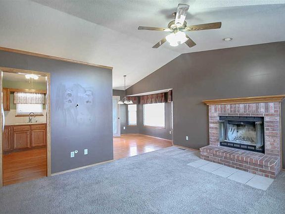 Beautiful 4 bedroom, 3 bath home on friendly cul-de-sac in southwest Wichita. Convenient location close to shops, restaurants and entertainment. New exterior paint. Large open living/dining area, with fireplace and wood floors in the dining room. New kitchen appliances. Eating bar and plenty of cabinet space. Spacious master suite on the main floor as well as 2 additional bedrooms. Huge family room with pellet stove and dry bar downstairs. Fourth bedroom with big closet downstairs, as well as 3rd full bath and storage/utility area. Decked attic storage. Large fenced backyard with storage buildings. Mature shade trees all around. Call today to schedule your private showing.