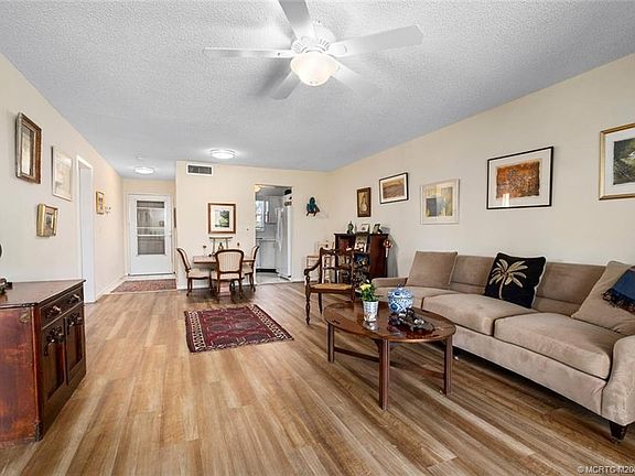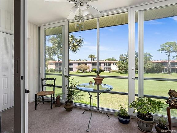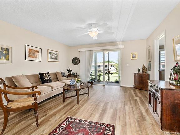 Fall in love with this 2 bed, 2 bath condo in the desirable 55+ community of Monterey Y&CC! Enjoy beautiful breezes & views of the golf course on your large patio/balcony with HURRICANE IMPACT sliders & impact windows throughout the unit. New luxury vinyl flooring in the main living area and both bedrooms, new vanities + tile floors in both bathrooms! New Valences throughout the unit. Large walk-in closets! Kitchen with double door refrigerator, new hardware, range, dishwasher & microwave! Unit is being sold partially furnishedbeds, couch, outdoor furniture included. MY&CC includes unlimited golf, 2 clubhouses, pools, WI-FI, 2 fishing piers on the river, putting greens, Bocce Ball, library + exercise room. Cable & trash included in HOA fee!