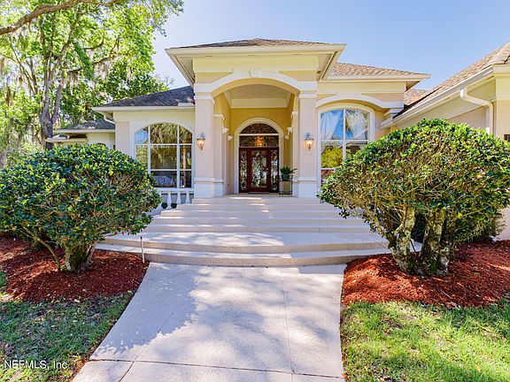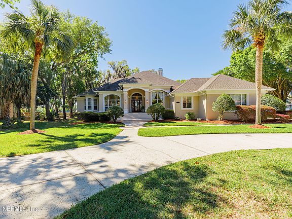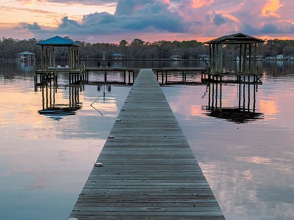There are only a few waterfront properties in Clay County with Sunset Views and those that own them seldom let them go. Located in the exclusive Pace Estates section of the Pace Island guard gated community, this classic home is certainly in a premium waterfront location. Sheltered in Mill Cove you can enjoy the waterfront from the dock you share with your neighbor (think lower maintenance costs) and depart for adventures on the St. Johns and beyond. Take your boat to a Jaguars game, fish from your kayak or explore locally on your paddleboard. At the end of the day, you can enjoy spectacular sunsets over Doctors Lake in this gorgeous single-story escape. With 13 ft. ceilings and over 3,500 sq. ft. this spacious home is set for entertaining both inside and out. Serve your guests from the fully decked out wet bar or host them outside on the covered patio next to the pool and hot tub with 4 bedrooms and 3 and 1/2 baths, there is room for a large family or guests.