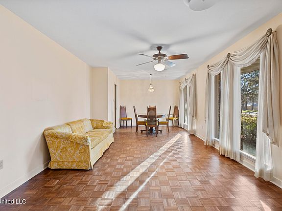 parquet floors ,and lots of natural lighting . The kitchen and breakfast nook flow together,and there is a large dining room and living room area as you open the front door . There are 4 bedrooms and 2 baths and lots of closet space in each . The master suite is large with plenty of closet space .The den has a real fireplace with parquet flooring and gorgeous built in