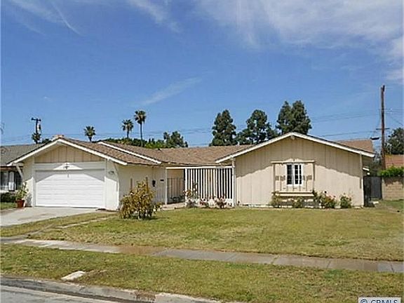 Single level home in quiet Anaheim neighborhood. Spacious floor plan with 1,651 square feet on 7,212 square foot lot; 3 bedrooms and 2 baths; fireplace in living room; open kitchen with wood cabinetry and built-in appliances; dining room with ceiling fan; master bedroom with privte bath; secondary bedrooms with wood flooring; enclosed patio with sliding doors; 2 car attached garage with laundry area; lovely rear yard with detached patio cover; some TLC needed; close proximity to Modjeska Park, property sold as is.
