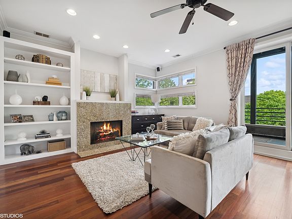 Highly rated COONLEY school district...Check out this fabulous very large 3 bed | 2 bath condo located in one of Chicago's hottest neighborhoods, North Center. Designer finishes everywhere - rich Brazilian HWF throughout, granite counters, custom cabinets, crown molding, SS appliances and granite faced gas fireplace. Bathrooms are loaded with natural stone tiles, marble shower surrounds, soaking jet tub and custom glass shower panels. Open concept living area with natural sun light from the NEW floor to ceiling patio doors and custom corner windows! Not one but two PRIVATE balconies for your entertainment. Master bed walk in closet, custom high end built-in shelfing throughout, 2 tandem outdoor parking spots all included plus the A++ location - steps to the Brown Line, parks, grocery, and the hippest bars and restaurants on the North Side of Chicago!