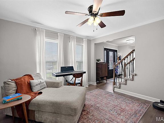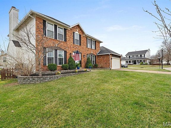 Stylishly updated 2-story in Highgrove Place is sure to impress. Foyer flanked by den & formal living room. Chef’s kitchen is a dream w/ concrete countertops, ceiling-height cabinetry, marble tile backsplash, five-burner gas range, pot filler & SS appliances. Breakfast room walks out to composite deck overlooking a large fenced yard. Spacious great room w/ bay windows, whitewashed fireplace, built-in cabinets, shiplap accent wall & custom reclaimed barnwood door. Powder room & main floor laundry w/ custom risers for W/D. Upstairs are 3 spacious bedrooms & full bath. Owner’s retreat w/ walk-in closet, luxurious ensuite w/freestanding soaker tub, custom shower accents & double vanity. Finished basement has dedicated areas for gym, kitchenette, office, rec area, 5th bedroom w/ walk-in closet & full bath. Roof 2018, HVAC 2018, WH 2023. Highly rated Ft. Zumwalt Schools. Neighborhood has community pool, walking trails & stocked ponds. BACK ON MARKET after buyer’s financing fell through.