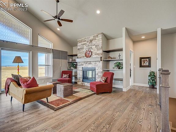 Beautiful Semi-Custom Ranch Style Home on 35+ Acres w/Many Design Upgrades & Features for Main Level Living at it's Finest!!! The Large Windows Allow for an Abundance of Natural Light & Appreciation for Framing the Sweeping Pikes Peak & Front Range Views!! Large Open Living Rm, Dining & Kitchen that's Ideal for Entertaining & Interaction w/Floor to Ceiling Stone Wall Fireplace. Kitchen is Fantastic w/Large Island/Bar, Granite Counters & Aristokraft Cabinets in White that are also Showcased Throughout the Home. Large, Spacious Master Retreat w/5pc Bath Featuring Custom Shower & Free Standing Tub. Laundry Rm w/Dog Wash is a Perfect Fit for all the Animals as Well! The Lower Level Features a Large Family Room w/2 Large Bedrooms, a Full Bath & Option for Expansion for a 3rd Bedroom w/Window and Lots of Storage!! The Home is Furnished w/High Grade Custom Blinds as Well!!!