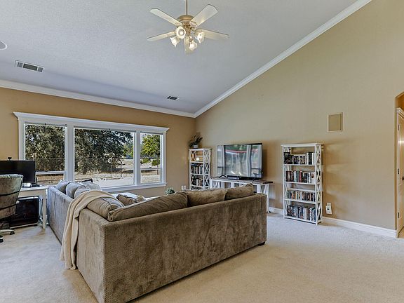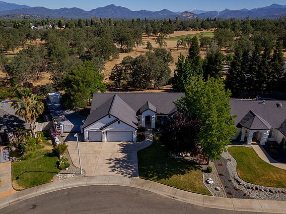 4 bed potential! Want space without a lot of property to maintain? Beautiful Ridgewood Estates Home backs to greenbelt/golf course-back of the neighborhood with a peaceful backyard! 3 car garage & lots of gated RV/boat parking-room for ALL your toys! Filled with abundant natural light, vaulted ceilings, & crown moulding. Massive Living Room! Huge kitchen w/ stainless appliances (5 burner gas range & double oven!), pantry, & ample counterspace/storage. Kitchen opens to dining area + 4 seat breakfast bar. 1/2 bath off entrance to backyard. Large Owner's Suite with large walk-in closet & EnSuite has dual sink vanity & deep walk-in shower. Current owners are using enclosed office as a 4th bedroom. Huge covered back patio. Sought after N Redding location & affordable City of Redding utilities!