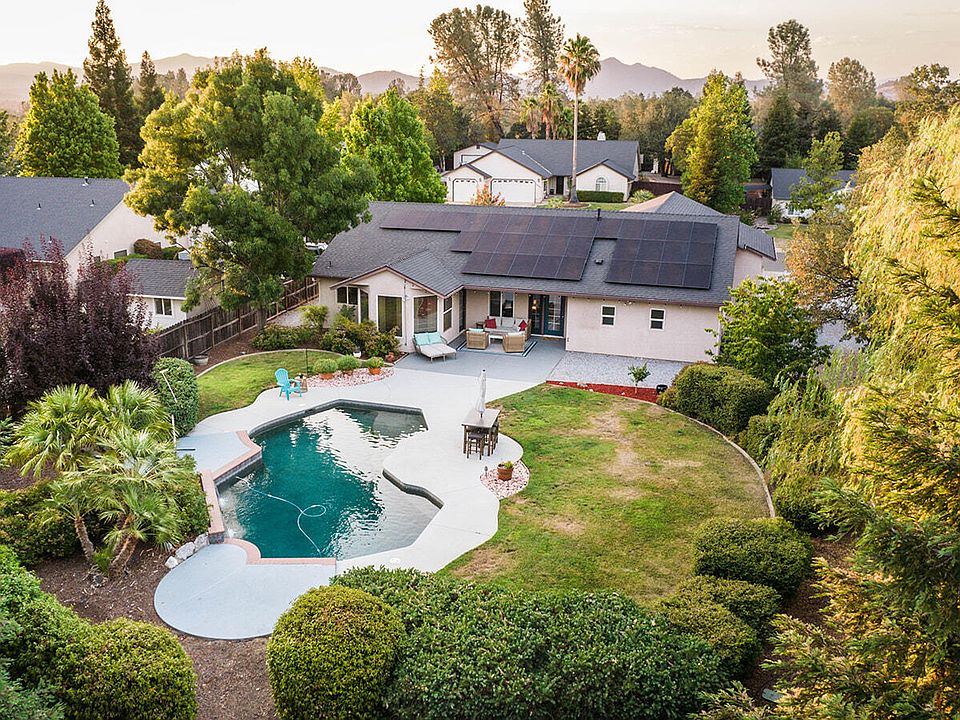 Best Locations, Epic Park like setting, Massive Solar Array, Large World Class Pebble Tech Pool, 4 bed, 2 bath, friendly and unique living spaces you must experience, a large bonus permitted finished space in the garage. French doors open to a spacious master suite, master bath has a soaking tub. If you want the home that is the center of family Holidays, Birthdays, and Celebrations, you will want to visit. Wood floors in Family room, Large open living room split in two by a fireplace. Dinning room, outdoor living spaces, and Classic Bright Kitchen. The backyard is the entertainer's dream and kids playground paradise. Close to everything, but quiet and hidden as a peaceful retreat. RV area as well. Inspections are complete and as clean as you could ever hope for. A dream home!